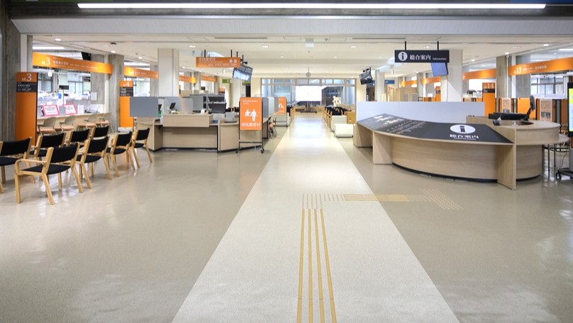 受付では、来庁される皆さんが快適に受付を行える環境づくりを目指しました。エントランスから待合室までのメイン通路の途中に受付を設置することでシンプルで分かりやすい動線設計にしました。